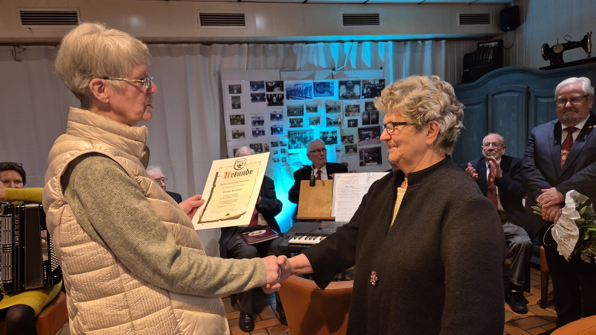 Vorstandsmitglied Monika Rieper überreichte dem Vorsitzenden des MGV die Ehrenurkunde für das 100-jährige Bestehen des Männerchores
